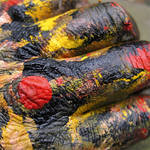 2007De schoonheid van verfhanden. bijna een abstract schilderij. Vrevreemding. Poriën en lijntjes worden bijna groeven. Het gaat over voelen, de tastzin. Erotisch bijna, volgens sommigen. Soms lijkt het ook de huid van een dier. Fascinerend: de handen van een kunstenaar. (Oplage 5)